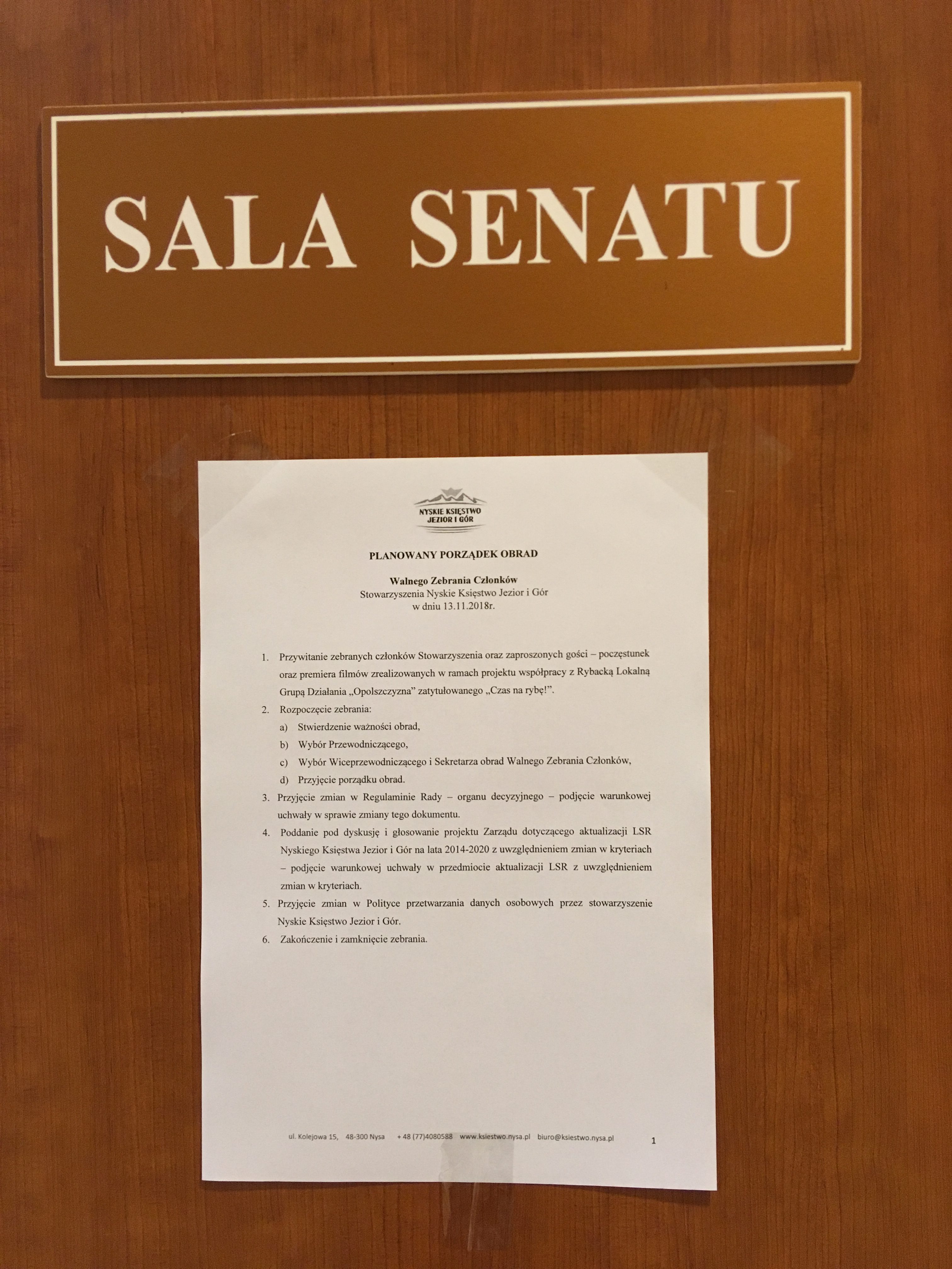 Zarząd stowarzyszenia Nyskiego Księstwa Jezior i Gór z siedzibą w Nysie, zgodnie z §24 ust. 1 Statutu Stowarzyszenia zawiadamia o Walnym Zebraniu Członków Stowarzyszenia, które odbędzie się w dniu 13 listopada 2018 r. o godz. 15.30 w Sali Senatu Państwowej Wyższej Szkoły Zawodowej w Nysie przy ul. Armii Krajowej 7 (budynek mieści się obok przedszkola nr 6 i Komendy Powiatowej Policji w Nysie).
