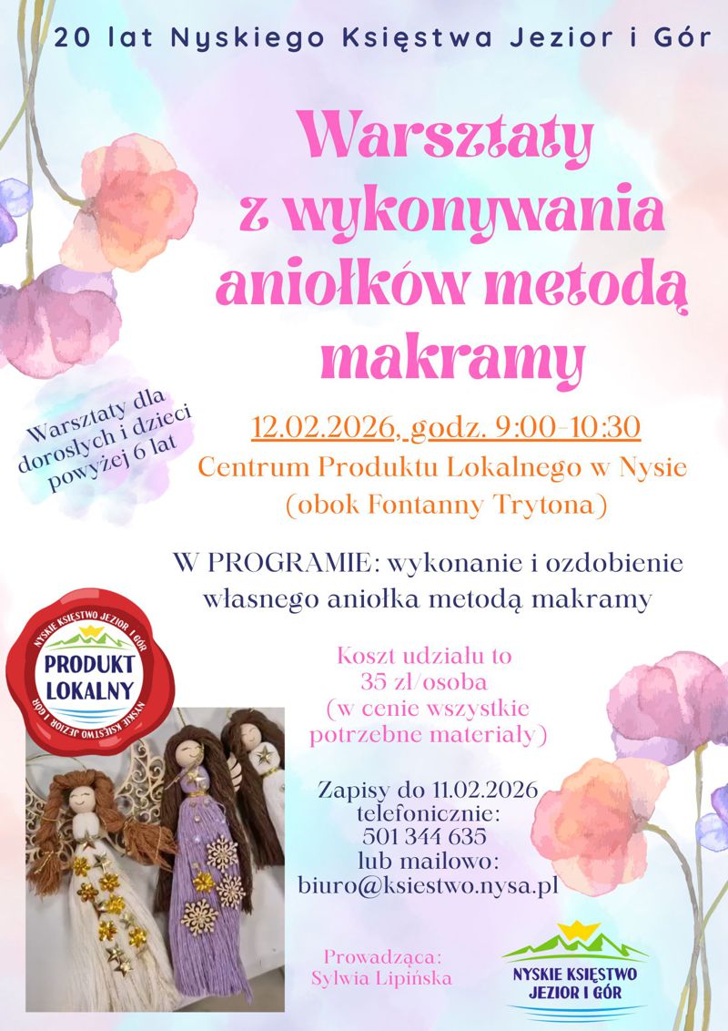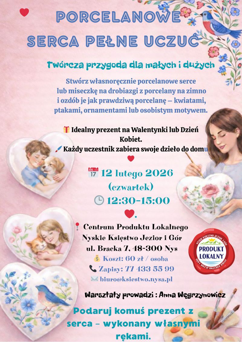 Zapisy na poszczególne warsztaty przyjmujemy do dnia 11.02.2026 (środa) – osobiście/telefonicznie pod numerem: 77 433 55 99 (do godz. 15.30) lub mailowo: biuro@ksiestwo.nysa.pl.